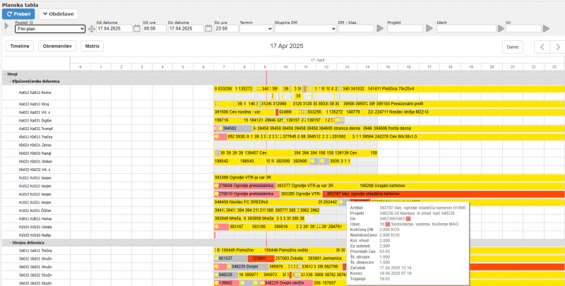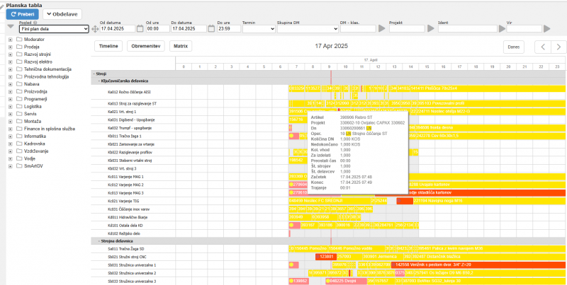 - trenutna zasedenost delovnega mesta ali cele proizvodnje