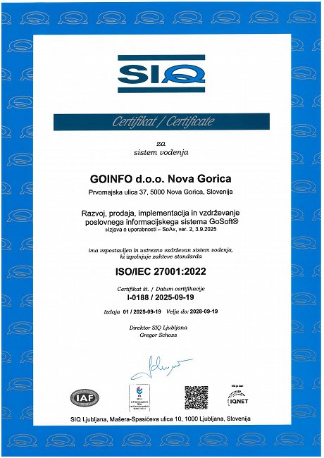 ISO/IEC 27001:2022 pa dokazuje, da skrbno in sistematično varujemo vaše podatke ter upravljamo informacijsko varnost na najvišji ravni.
